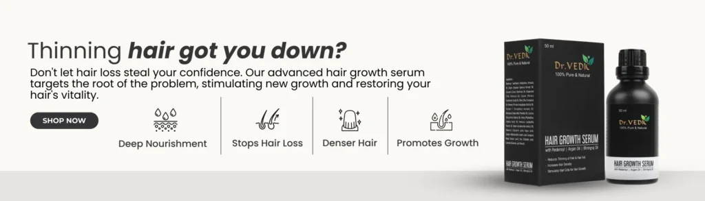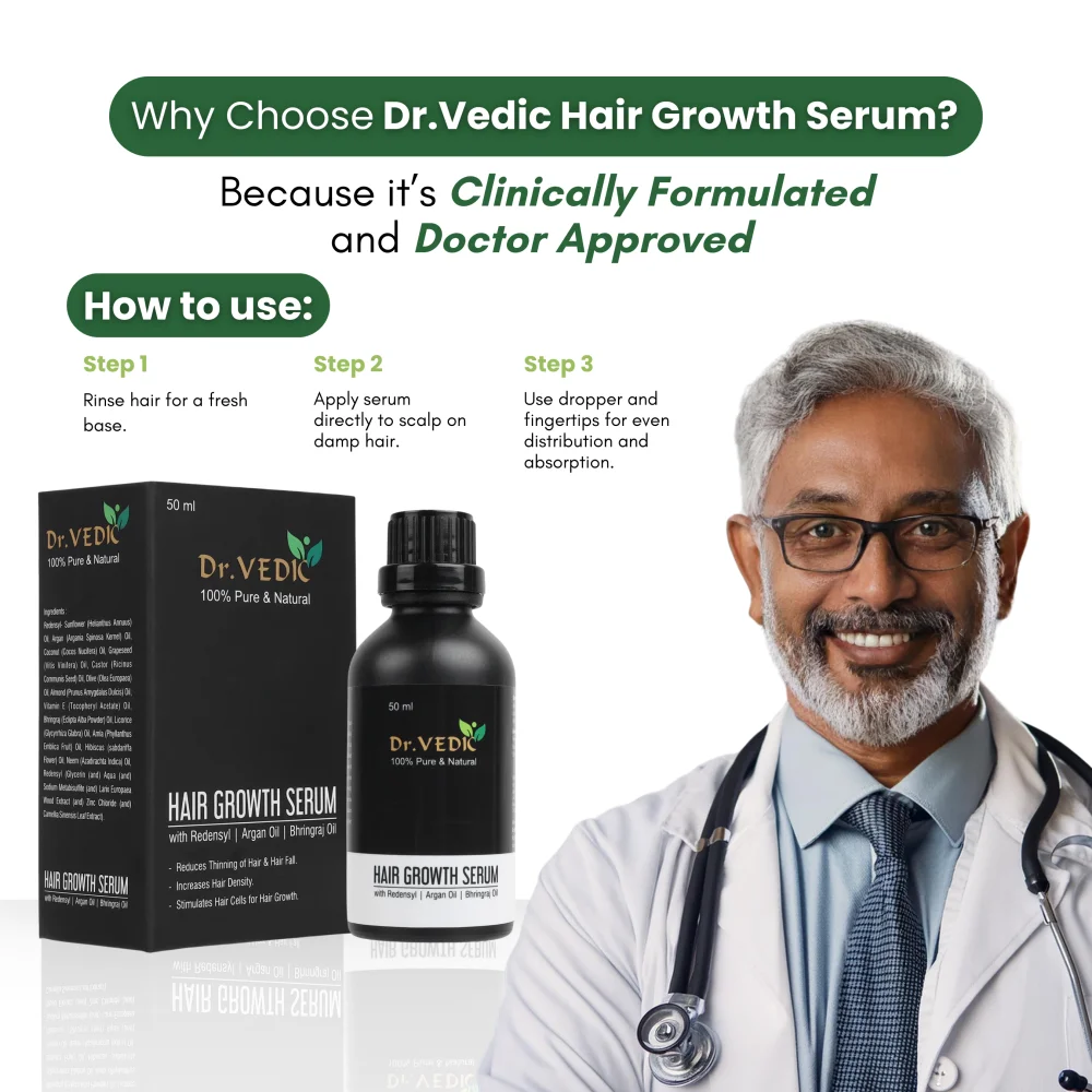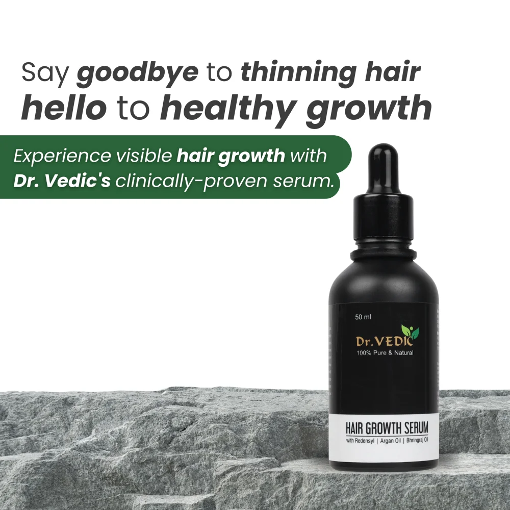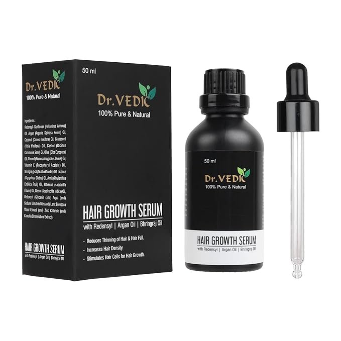 Dr. Vedic Hair Growth Serum is your solution for achieving thicker, healthier hair. Its natural ingredients are carefully chosen for their ability to stop hair loss, promote growth, and nourish the scalp deeply. Regular use of this serum not only addresses hair fall but also enhances the overall quality of your hair, making it denser and more resilient. The lightweight formula ensures that your hair remains non-greasy and manageable while receiving essential nutrients.